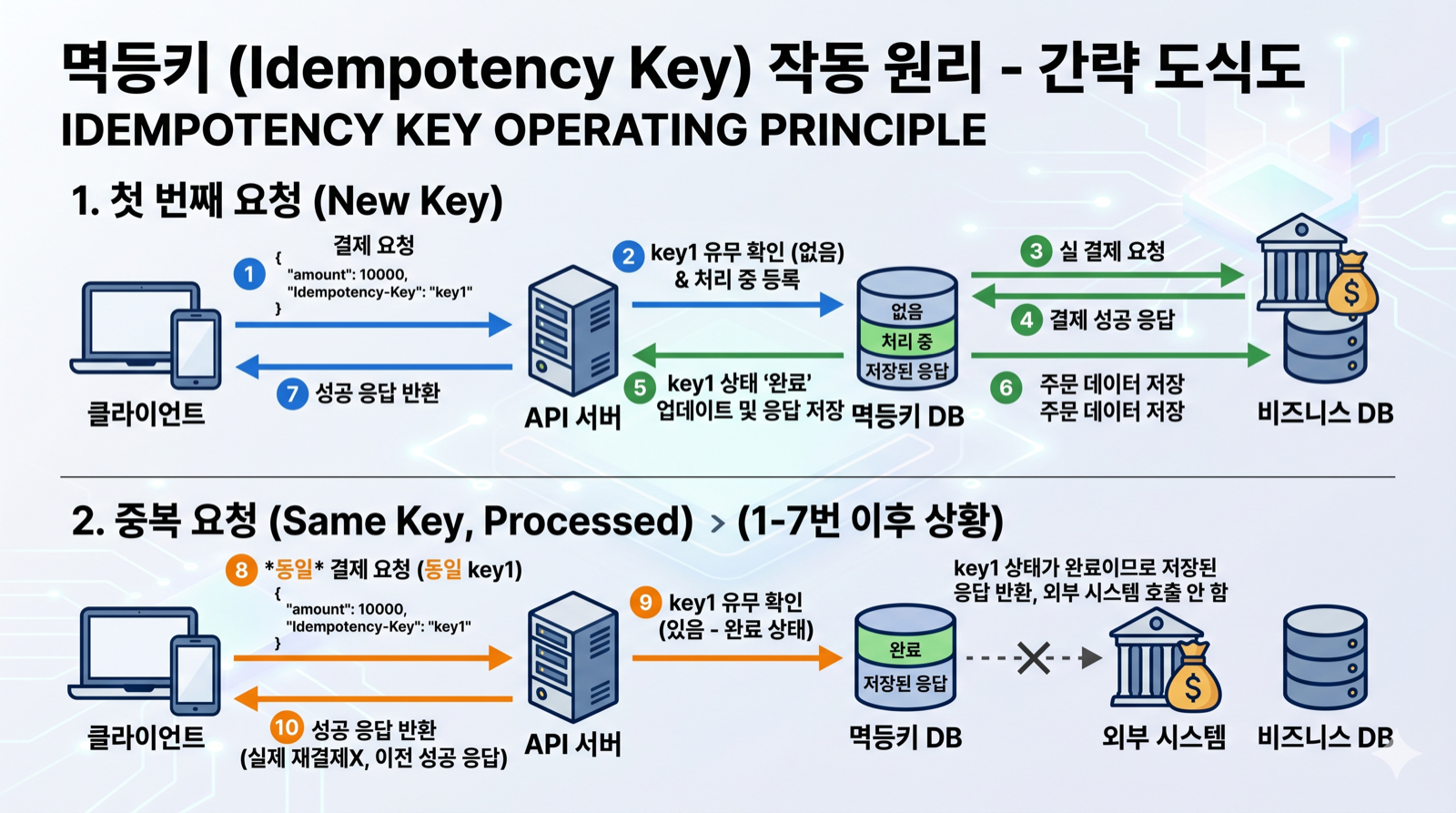 이 경우 시스템은 “이 요청은 이미 처리된 결제 요청”이라고 식별할 수 있어야 한다.
